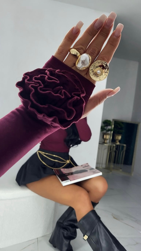 BLUZKA ROSE Z RÓŻĄ BORDO