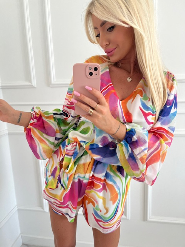 Cudowny kombinezon w formie spódniczko spodenek z delikatnego zwiewnego materiału.