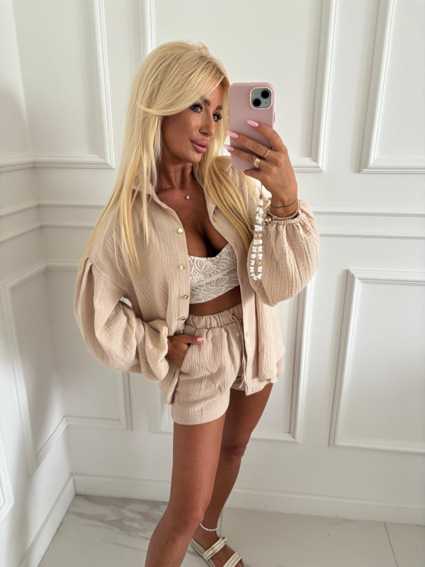 Komplet LOVE SUMMER beżowy muślin